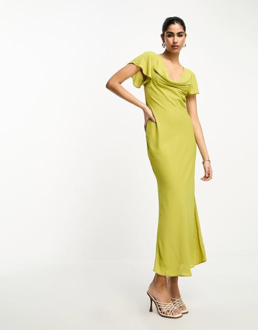 Asos Design Midikleid In Olivgrun Mit Flatterarmeln Und Wasserfallausschnitt Asos